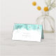 Un fondo abstracto que recuerda al mármol en tonos suaves verde azulados a través del azul profundo del agua y veteado con una plata brillante, es el telón de fondo de un texto de escritura elegante y de diseños modernos en las piezas de esta hermosa suite boda. La tarjeta de lugar de tabla boda que se muestra aquí presenta el texto de guión de arriba más el texto de secuencia de comandos opcional de 'tabla' y una plantilla para agregar sus nombres y fecha de boda al reverso. Buscar ID644 para ver todas las piezas de coordinación de este conjunto.
