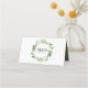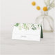 Elegante tarjeta de boda botánico/número de mesa con follaje pintado de color verde y hermosa caligrafía diseñada para coordinar con nuestra colección de bodas de Agua Verde. Añade tus iniciales y fecha de boda a la parte posterior de las tarjetas de lugar para que tengan un aspecto personalizado.