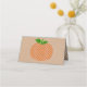 Tarjeta de lugar plegado con temática Rustic Fall, hecha en papel artesanal, con gráficos de calabazas puntiagudas de polka y una placa de texto. El interior tiene puntos de polka blancos sobre el fondo del papel artesanal. Personalice el área de texto para leer lo que desee. Ideal para tarjetas de lugar de evento, etiquetas de pie para productos y más.