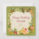 tarjeta de aves y flores verdes retro de cumpleaño