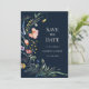 Establece el tono para tu gran día con la tarjeta de "Save The Date" Navy Blue Boho Wildflowers de nuestra impresionante colección de boda Navy Blue Wildflower Meadow. Contra un fondo de terracota prístina, las flores silvestres coloridas están dispuestas de manera encantadora, como en un prado, evocando la belleza de la naturaleza y la libertad del aire libre.