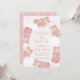 Esta adorable tarjeta de aviso de baby shower de niña "apenas podemos esperar" presenta un fondo rosa claro con ositos de gominola rosas, nubes y estrellas. El reverso presenta un fondo rosa con patrones de osito y chupete. Personalízala según tus necesidades. Puedes encontrar productos coincidentes en mi tienda.