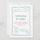Tarjeta de aviso de boda azul caprichosa con garab