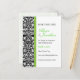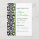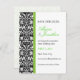Un patrón de papel pintado de damasco en blanco y negro junto con acentos verdes sirven para resaltar esta tarjeta. Fácilmente personalizable con su(s) nombre(s), fecha del evento e información. Disponible en colores alternativos con productos coincidentes.