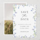 Tarjeta de aviso de boda con foto floral azul