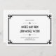 Diseño de tarjeta de aviso de boda con marco elegante en estilo Art Deco sobre fondo blanco, totalmente personalizable y configurado como plantilla para su fácil personalización. La misma invitación de boda, tarjeta de respuesta y tarjeta de inserción están listadas a continuación.