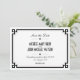 Personalice este diseño de tarjeta de aviso de boda con marco retro Art Deco, totalmente personalizable y configurado como plantilla para su fácil personalización. La invitación de boda, la tarjeta de respuesta y la tarjeta de inserción del mismo diseño se enumeran a continuación.