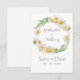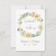 Preciosa corona floral de narcisos amarillos y blancos realizada en suaves acuarelas, perfecta para este recordatorio de “Save the Date” de boda de primavera y verano. Escritura y tipografía marrón coordinada. Personaliza según sea necesario. Para personalizar, haz clic en el enlace "personalizar más" y utiliza la herramienta de diseño para realizar cambios. Muchas selecciones de papel diferentes, así como formas de papel. 100% de satisfacción del cliente en “Zazzle”