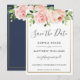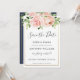 Esta chic tarjeta de aviso de boda presenta un hermoso arreglo floral sonrosado en acuarela. Diseñado para coincidir con nuestra colección de boda Bloomsbury. Personalízala con tus detalles de manera fácil y rápida, simplemente presiona el botón de personalizar para reorganizar y dar formato al estilo y ubicación del texto. (c) The Happy Cat Studio