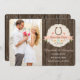 ¡SE VAN A CASAR! LINDAS TARJETAS DE ANUNCIO DE BODAS AL ESTILO GRANJA OCCIDENTAL CON UN HERRADURA MARRÓN Y UN CORAZÓN DE CORAL A CADA LADO SOBRE UN DELICADO DISEÑO DE ENCAJE DE PAPEL CREMOSO. RAMAS DE CEREZO BLANCO FLORIDO, LAUREL FLORIDO Y Girasoles AMARILLOS, MARGARITAS, SUSANAS DE OJOS MARRONES Y ROSAS SILVESTRES AZUL TEAL Y TULIPANES SILVESTRES YACEN DEBAJO. LA PARTE TRASERA DE ESTA TARJETA CON ASPECTO DE MADERA O TONEL CON BORDE DE CABEZA DE CLAVO PUEDE SER PERSONALIZADA CON LOS NOMBRES DE LOS NOVIOS EN EL DISEÑO DE E