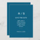 Anuncie su día especial con estilo con esta "Tarjeta de aviso de fecha para guardar elegante clásico azul con monograma". Con un diseño azul atemporal y un monograma refinado, esta tarjeta establece el tono perfecto para su próxima boda. Ideal para celebraciones formales, tradicionales y modernas, es totalmente personalizable para que coincida con sus detalles únicos. Cree una primera impresión memorable con esta sofisticada tarjeta de aviso de fecha para guardar que combina elegancia y encanto.