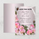 Hermosas rosas rosadas con perlas sobre un fondo rosa. Esta hermosa tarjeta de aviso es una forma elegante de anunciar tu gran día. Personaliza la tarjeta cambiando el texto en los campos proporcionados. Puedes cambiar el estilo, tamaño y color de la letra.
