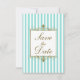 Tarjeta de aviso de fecha aqua, rayas blancas y do