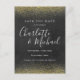 Con nombres al estilo de la firma y brillo dorado, esta tarjeta de aviso de fecha de pizarra y blanca puede personalizarse con la información de su fecha especial en tipografía blanca con estilo. Diseñada por Thisisnotme©