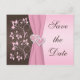 Esta postal de aviso de fecha de bodas con flores rosadas y marrones tiene flores rosadas, una cinta rosa IMPRIMIDA y un par de corazones de joyas con diamantes y brillo IMPRIMIDOS que coinciden con la invitación de boda que se muestra a continuación. Si necesita algún otro artículo que coincida, por favor envíe un correo electrónico a niteowlstudio@gmail.com.