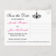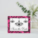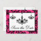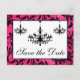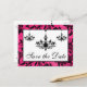 Esta postal moderna y de moda con candelabros rosados fucsia, negros y blancos para guardar la fecha tiene un floreo ornamentado y un borde de volutas que coincide con la invitación de boda que se muestra a continuación. Si necesita algún elemento adicional que coincida, por favor envíe un correo electrónico a niteowlstudio@gmail.com con su solicitud.