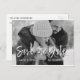Tarjeta de aviso de fecha con foto en blanco y negro de carbón gris de invierno con letra manuscrita. La foto y el texto de esta letra manuscrita a pincel se pueden actualizar y personalizar con su foto y nombre. Esta tarjeta también muestra su nombre en la parte posterior de la tarjeta de aviso de fecha.