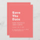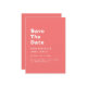 Crea una primera impresión audaz con esta tarjeta de aviso de fecha de retro rosa caliente. Con vibrantes tonos de verano y fuentes vintage divertidas, es perfecta para bodas juguetonas, modernas o no tradicionales. Personaliza con tus nombres, fecha y foto.