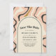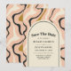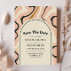 La "Tarjeta de anuncio de fecha de la Arquitectura de Remolino Retro" combina magistralmente tonos rosa, negro, dorado y crema, creando un anuncio visualmente impactante para su día especial. Los remolinos retro le dan un encanto caprichoso y atemporal, mientras que los acentos dorados añaden un toque de elegancia y celebración. Enmarcada dentro de un diseño de arco, la tarjeta invita cálidamente a los invitados a reservar la fecha para su próxima boda, ofreciendo una visión previa del evento sofisticado y elegante que está por venir.