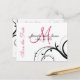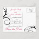 Las hermosas tarjetas de aviso de Pink, Black y White Swirls son una forma perfecta de informar a sus invitados de su próxima boda. Elke Clarke© La tarjeta es totalmente personalizable, incluyendo los colores del texto y del fondo. ¿Necesita ayuda con un paquete de boda para que coincida con este diseño o desea cambiar el color de los remolinos? Por favor, póngase en contacto con luxuryweddinginvitations@gmail.com