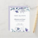 Flores delicadas de polvo azul y púrpura con eucalipto y verde crean bordes atractivos para un anuncio de boda de primavera o verano. Todo el texto en la parte delantera y trasera de nuestra tarjeta de presupuesto de Save the Date floral de acuarela se puede personalizar fácilmente en la plantilla. POR FAVOR Tenga en cuenta: Los sobres también están disponibles para nuestras tarjetas de "presupuesto", pero no están incluidos de forma automática.