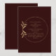 Celebre su día especial con esta lujosa tarjeta de aviso con un profundo tono burgundy. Diseñada con elegantes fuentes decorativas Cinzel y una clásica disposición circular, esta tarjeta emana elegancia y refinamiento atemporales. Perfecta para bodas formales, celebraciones nocturnas y eventos de alta categoría. Totalmente personalizable y lista para impresionar a sus invitados.