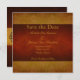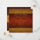 Las tarjetas de aviso de vino y dorado con un patrón de damasco vintage y trabajo de pergamino personalizado son personalizables con la información de su boda
