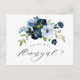 Un hermoso diseño de guirnalda floral con flores elegantes de azul sucio y azul marino. El texto y los colores se pueden personalizar.