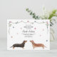 Flor acuarela pintada a mano y tarjeta de Baby Shower de perro de Dachshund.