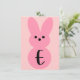 Tarjeta de banner rosa "E" de forma de conejito Ea