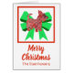Espléndida silueta de perro escocés con un patrón abstracto de papel de Navidad rojo y arco verde. Los navidades y el mensaje de Año Nuevo que hay dentro pueden cambiarse a lo que quieras. Personaliza con el nombre debajo de la Feliz Navidad o simplemente añade feliz año nuevo.