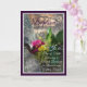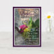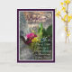 Las palabras en la parte frontal de esta hermosa tarjeta de bautismo de adultos dicen: "El bautismo es un paso de fe que sigue a una decisión del corazón para recibir y seguir a Cristo". El mensaje en el interior dice: "Deseándole alegría y muchas bendiciones mientras las manos amorosas de Dios lo guían en su plan especial para su vida. Felicitaciones". En el lado izquierdo interior está el versículo bíblico Marcos 16:16 que dice: "El que crea y sea bautizado será salvo;". La fotografía en la parte frontal de esta tarjeta muestra un ramo de hermosas flores púrpuras y amarillas en la horcadura de un roble.