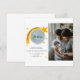 Este bonito diseño de anuncio de nacimiento presenta un ilustracion acuático de estrellas y luna y el mensaje de que estás sobre la luna para dar la bienvenida a la nueva llegada. Un diseño unisexo, perfecto para niños o niñas, y tiene un gran espacio fotográfico para la imagen de su pequeño.
