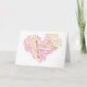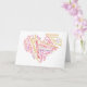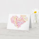 Esta tarjeta presenta un diseño en forma de corazón en la parte delantera, compuesto por la palabra Bienvenidos en muchos idiomas. En el interior puede personalizar el texto para adaptarlo a sus necesidades.