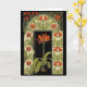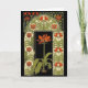 Flores rojas naranjas rodeadas de un marco Art Deco decorado en blanco y negro.