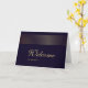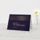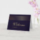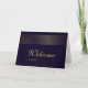 Tarjeta de bienvenida blanca con franja dorada