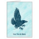 Una simple silueta azul de un cuervo vivo (Corvus corax) de estilo nórdico-celta, superpuesta a una imagen de fondo nevada. Personalizar agregando su propio texto.