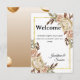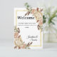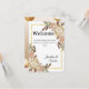 Bienvenidos a sus invitados con esta elegante tarjeta de boda floral que presenta suaves rosas de acuarela, acentos de marco dorado y tonos neutros cálidos. Perfecta para exhibir en la entrada de la boda, mesa de recepción o estación de bienvenida, este diseño agrega un toque de sofisticación a su celebración.