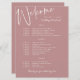 Tarjeta de bienvenida Itinerary Mauve de fin de se