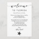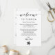 Esta tarjeta de estrella de mar moderna y elegante es el inserto perfecto para las bolsas de bienvenida de su hotel. Ingrese los eventos principales y una nota personalizada para ayudar a sus invitados a navegar el fin de semana.