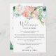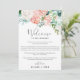 Estas tarjetas de bienvenida y itinerario de peonías románticas son perfectas para una boda elegante. El diseño floral presenta flores en acuarela en tonos rosa, melocotón y blanco en cascada. La parte frontal de la tarjeta presenta una carta de bienvenida y la parte posterior presenta el itinerario de la boda. Estas notas son ideales para bodas de destino y bolsas de bienvenida para huéspedes de hotel.
