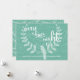 Tarjeta de vacaciones corporativa o de negocios con un fondo azul verde azulado con hojas blancas suaves, hiedra, flores y diseño de ramas con un pájaro blanco sobre laurel y texto blanco que lee Merry y Bright. Es fácil de personalizar con el nombre de su empresa o empresa. Coincidiendo.