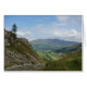 La tarjeta con la foto de Blencathra cayó de alto Rigg con la pared de piedra seca y el árbol de abeto en primero plano.