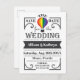 Diseño divertido de aviso de boda para bodas lgbt, el texto se personalizará. El elemento del globo aerostático se incluye con colores arcoíris lgbt.