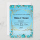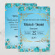 tarjeta de invitación de boda azul bebé claro floral dorado