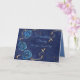 Esta tarjeta de felicitación de boda presenta una antigua bendición de boda irlandesa dada como una costumbre para el futuro feliz de la novia y el novio. La parte frontal de la tarjeta es de tonos azules intensos y medios con tonos dorados y beige de rosas [sin tinta de oro o pan de oro real]. El interior tiene una versión muestreada enmarcada de la parte frontal de la tarjeta en la solapa superior en color azul intenso. La solapa inferior de la tarjeta es de un color azul ceniza medio con texto blanco. El texto en la parte frontal dice: "Una bendición de boda para tu día especial". En el interior, una bendición cálida y encantadora. El color azul es lo suficientemente claro como para que puedas firmar con bolígrafo. Personaliza esta tarjeta si lo deseas o cómprala tal como está diseñada.