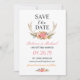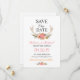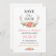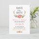 Tarjeta de boda boho con asta floral blanca para guardar la fecha.