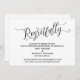 La distinción de este conjunto se debe a la elaborada fuente de escritura giratoria utilizada para las frases de acento. En el caso de que necesite informar a sus invitados que su boda ha sido cancelada, esta tarjeta ofrece una opción elegante. En esta pieza, se utilizó la fuente de caligrafía para crear un gráfico que representa la palabra "Lamentablemente". Utilice los campos de la plantilla para agregar sus datos personales y hacer que este diseño sea suyo. El fondo se puede cambiar a cualquier color que prefiera. Por favor, comuníquese con nosotros para cualquier solicitud especial o para obtener asistencia de personalización. // 98 //