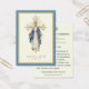 Con una hermosa imagen católica tradicional, una cruz de oro con un overlay de la Santísima Virgen María, Nuestra Señora de la Gracia. También hay una oración en la espalda para la novia y el novio con los tres corazones de Jesús, María y José. Se pueden modificar todo el texto y las fuentes.