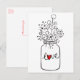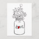 ¡Las notas de amor escritas a mano son una excelente manera de alegrar el día de alguien! Esta divertida tarjeta postal presenta un frasco de Mason dibujado a mano que destaca el amor impreso en una fuente de corazón rojo con flores silvestres.